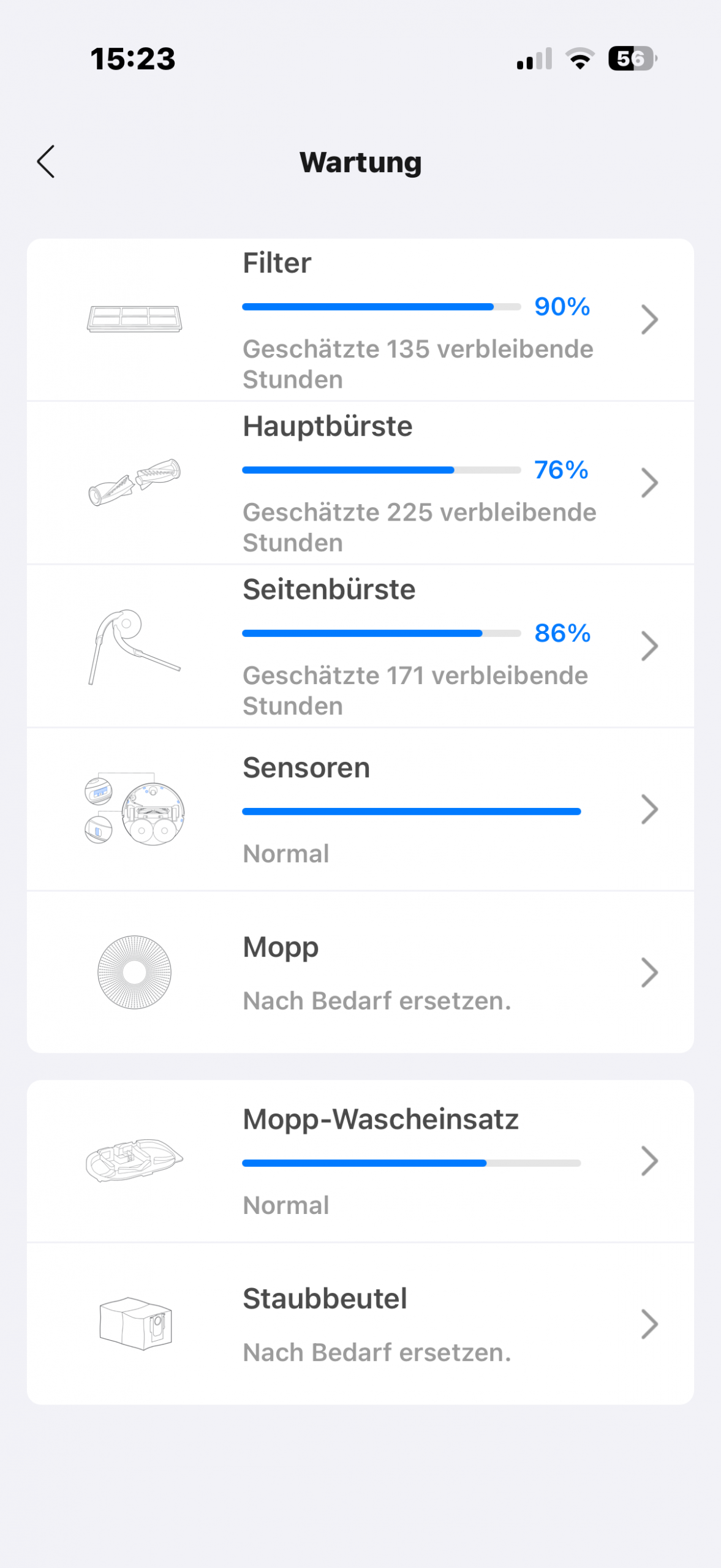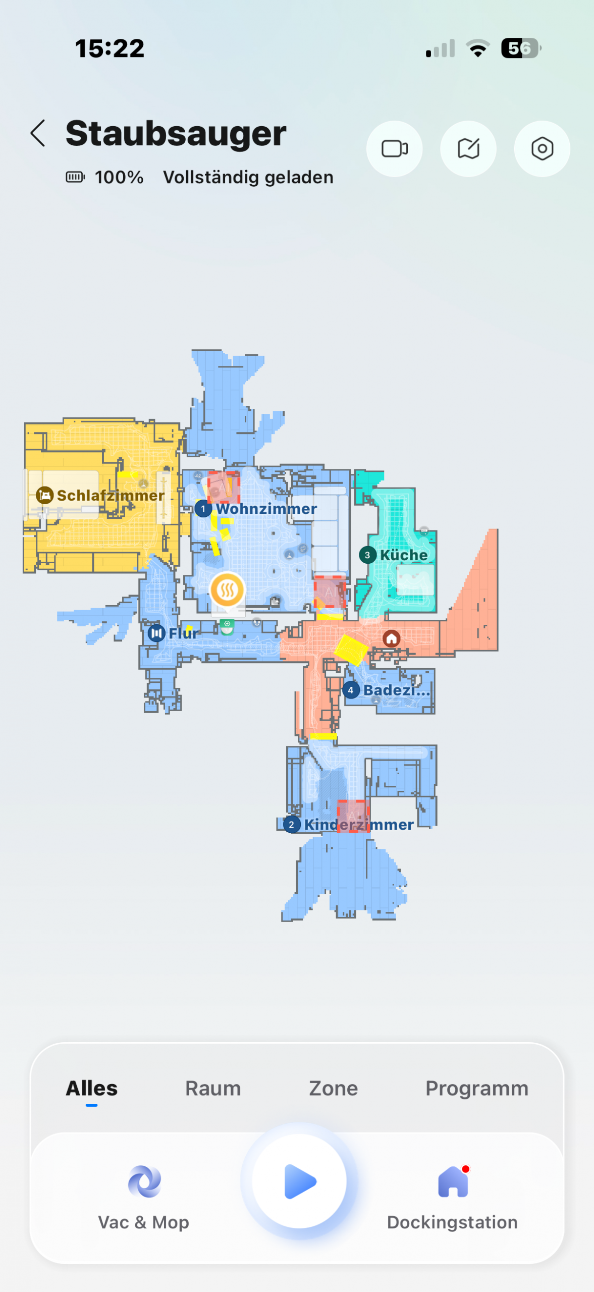 Die App läuft stabil, reagiert schnell und bietet klare Visualisierung – sogar Live-Verfolgung des Reinigungsvorgangs in 3D-Ansicht ist möglich.